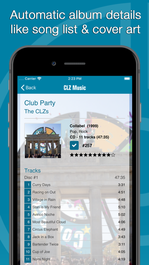 * Easily add album to your music inventory, using our CLZ Core online music database