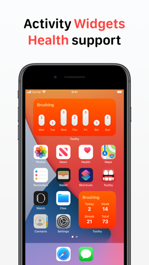 Toothy supports data sharing with the Health app to record tooth brushing time.